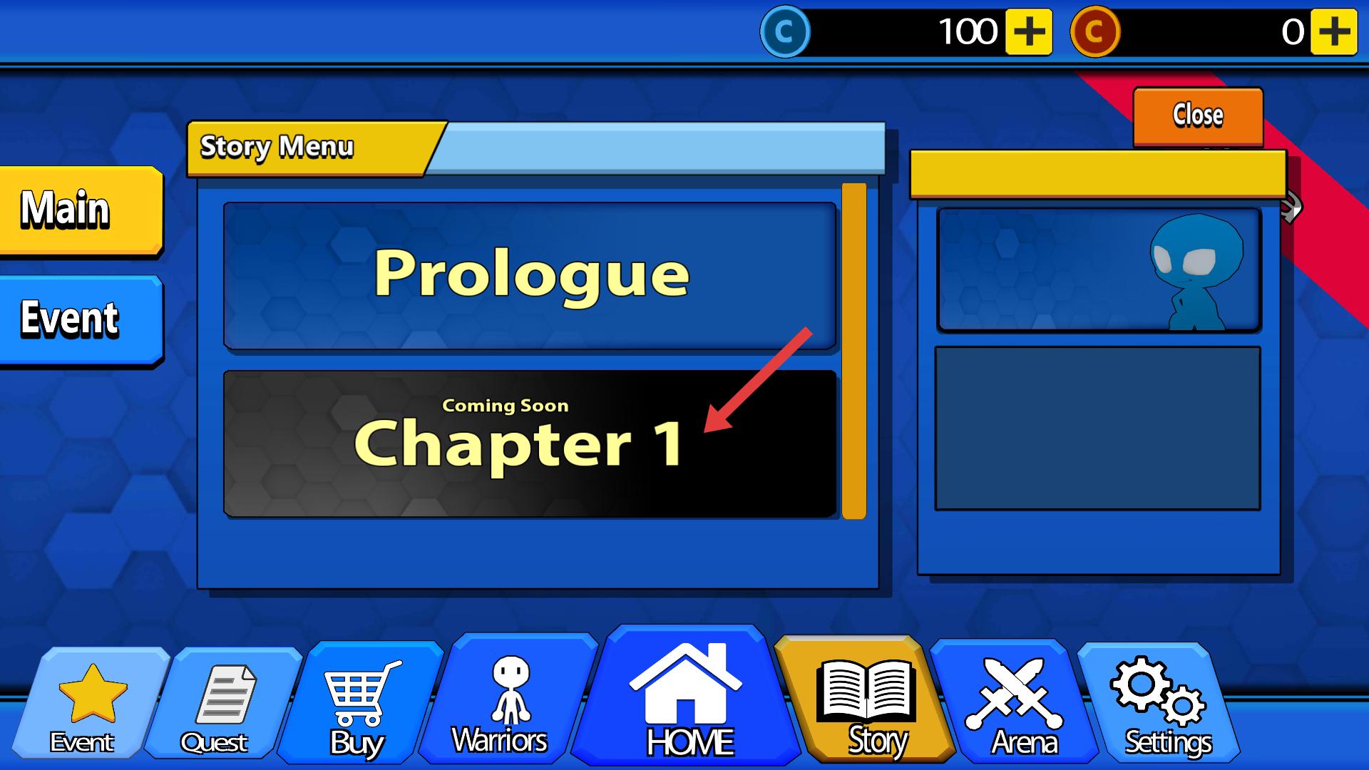 2、在Story界面,Prologue是序章,Chapter1即將推出,先體驗序章熟悉劇情,關注章節更新,推進故事線,解鎖新內容、角色,提升游戲體驗。