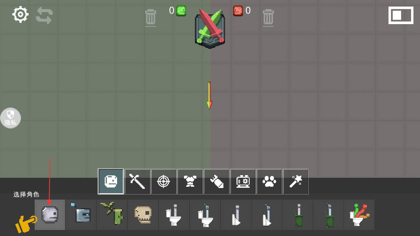 2、接著在游戲準備場景中看到下方有多種角色和道具可供選擇,先點擊選擇角色,挑選好角色后,再根據需要選擇合適的道具,為對戰做好準備。