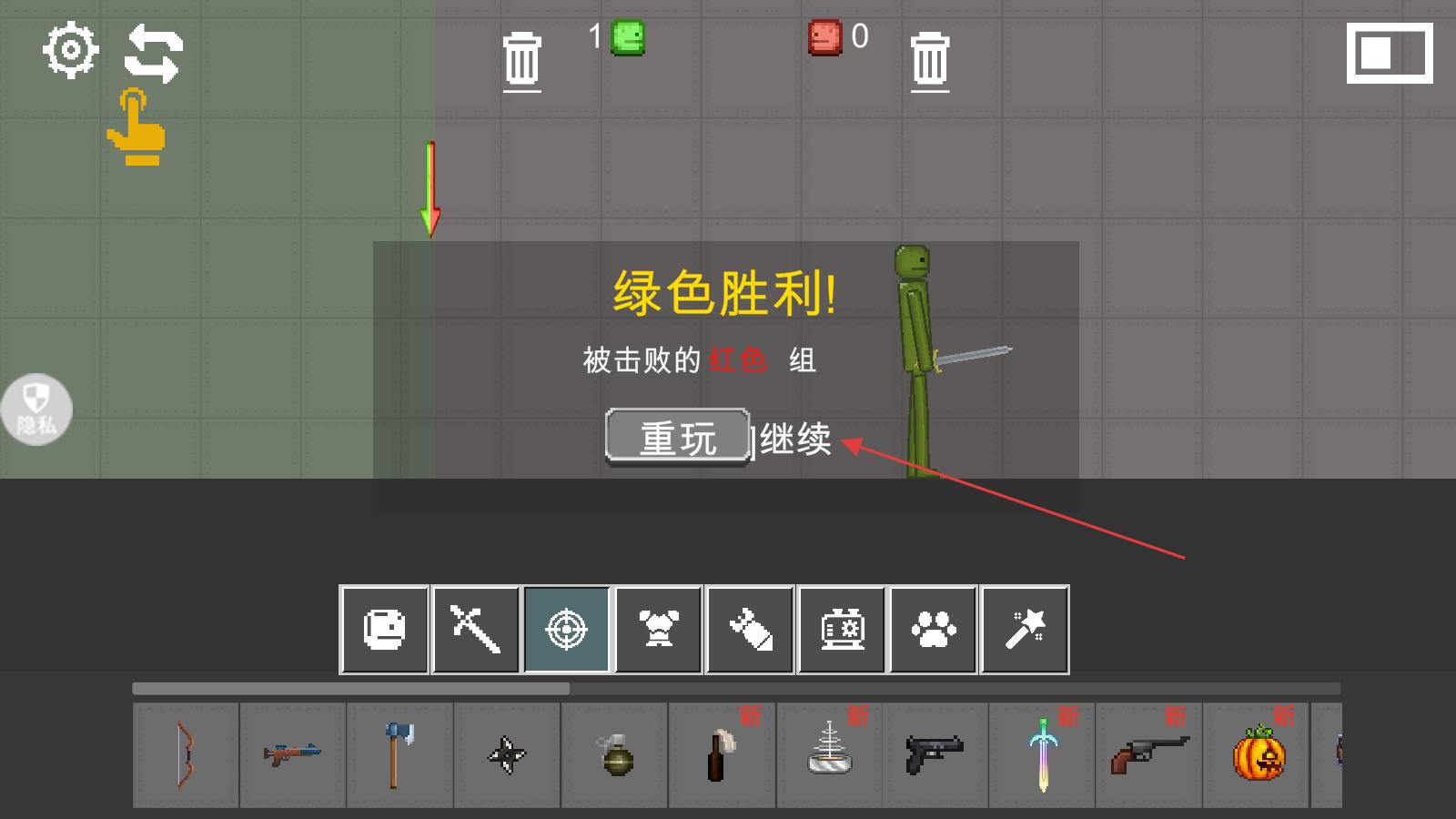 3、然后進入對戰場景,一方勝利后,界面會顯示勝利信息,此時可點擊繼續按鈕,開啟下一輪游戲或進入新的游戲環節。