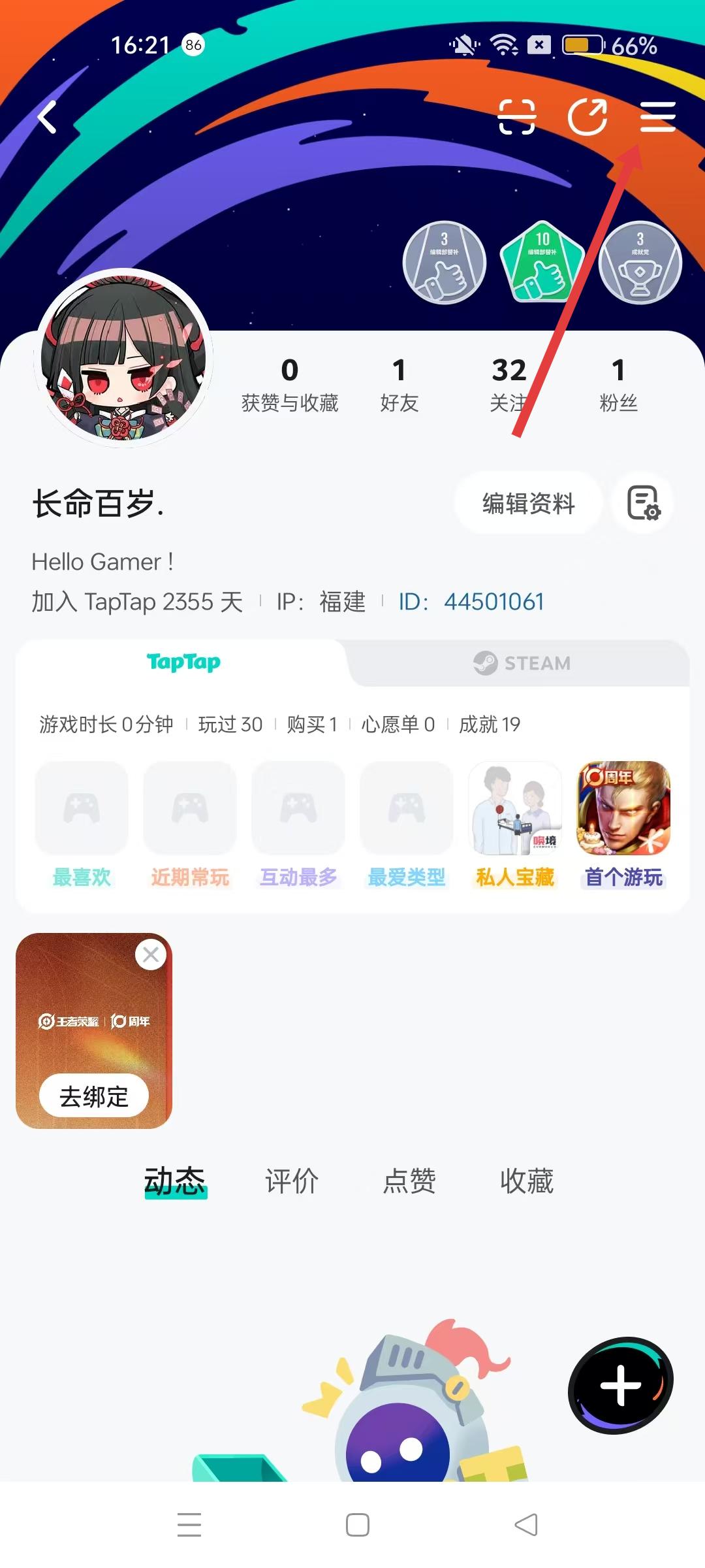 2、進入個人主頁,可查看獲贊與收藏、好友、關注、粉絲等數據,了解個人游戲社交情況。
