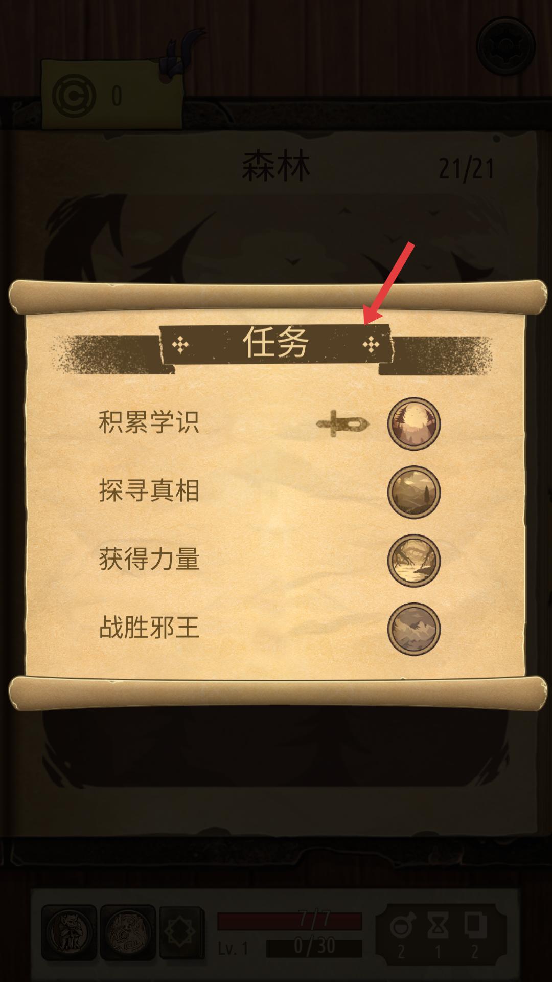 2、在森林場景,查看任務列表積累學識、探尋真相等,按順序推進,完成任務獲獎勵、解鎖內容,助力成長,為挑戰戰勝邪王目標鋪路。
