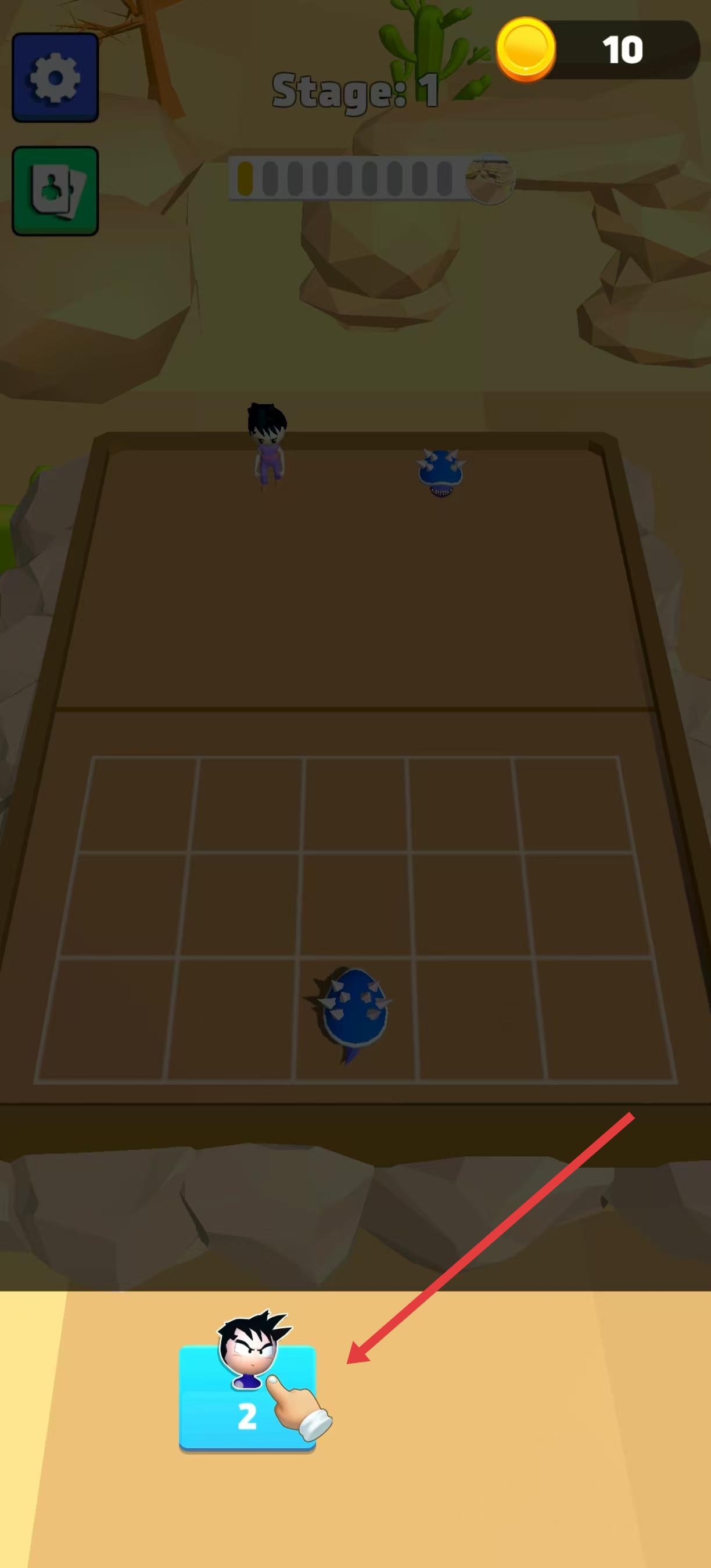 1、進入佳作后,首先看到顯示關卡1的界面,下方有數字2標識的人物頭像,點擊該頭像,人物會被放置到上方的格子區域內。