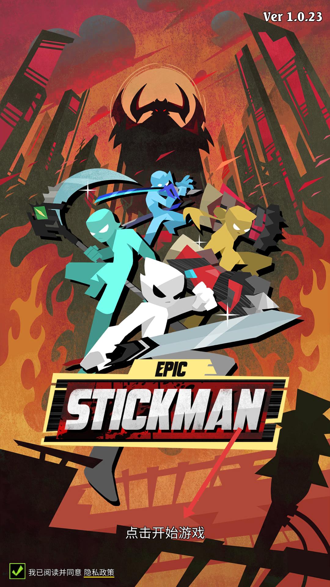 1、游戲啟動界面顯示點擊開始游戲,點擊該區域,即可進入游戲,開啟火柴人戰斗冒險之旅,開啟后續的闖關挑戰。