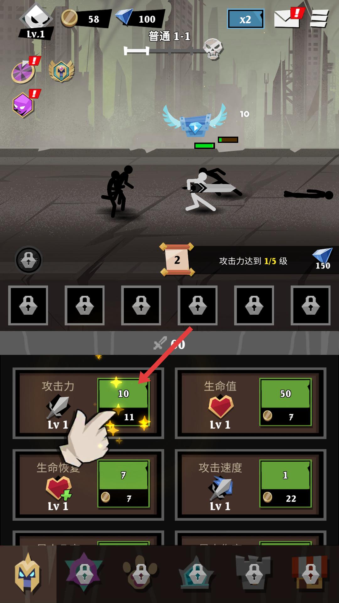 史詩火柴人戰爭怎么升級屬性的
