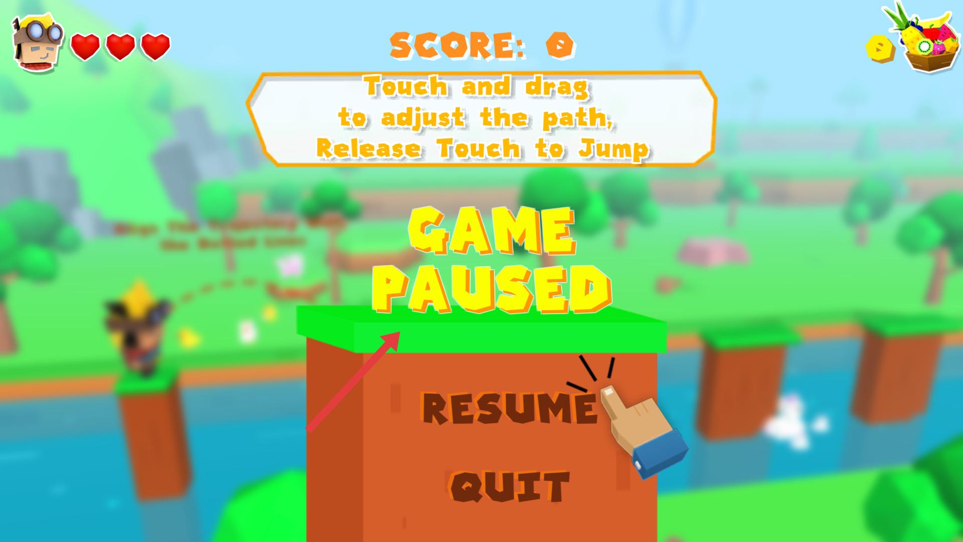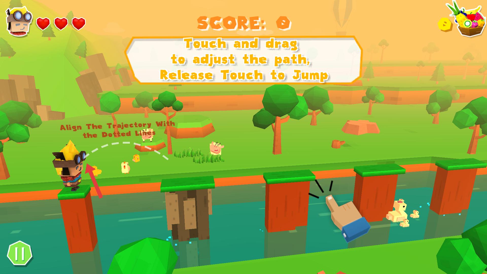 3、游戲時通過觸摸并拖動來調整跳躍路徑,瞄準目標后松開觸摸,角色就會跳躍,嘗試落在合適的平臺上。