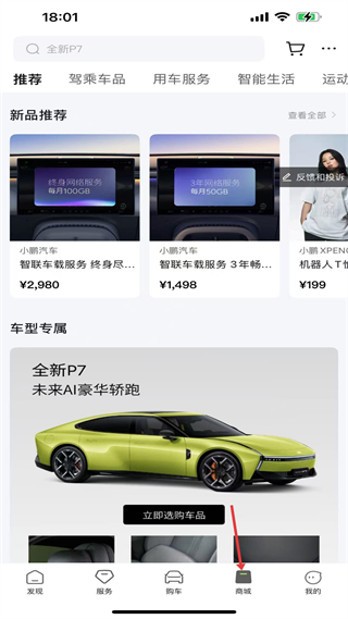 4、商城頁面提供智聯車載服務、車品等商品,設車型專屬板塊,支持車品選購,是小鵬生態產品的交易服務平臺。