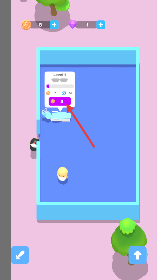 3、完成一定任務后,會出現關卡進度提示,如Level1的相關信息,點擊紫色按鈕可推進關卡,玩家可以繼續醫院冒險。