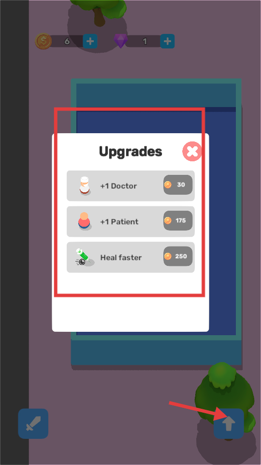 4、積累足夠金幣后進入升級界面,可選擇增加醫生數量、容納更多病人或加快治療速度等升級項,提升醫院運營能力。