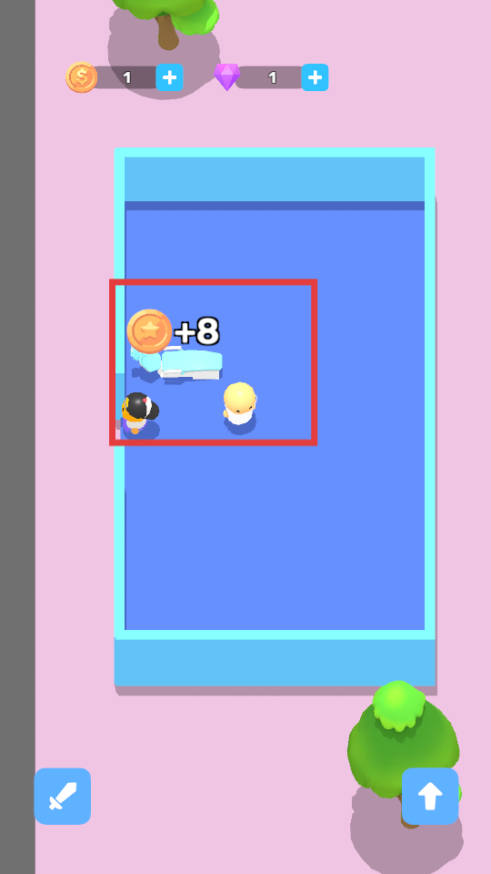 1、玩家在游戲初始,操控角色在藍色區域內移動,靠近病床等設施,可以與場景內元素互動,幫助前來看病的病人治療,開啟醫院相關的冒險與任務。
