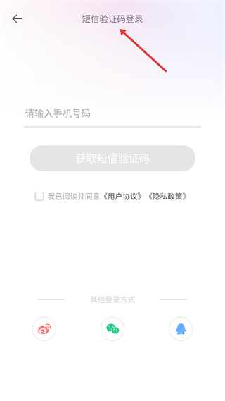 1、進入登錄頁,可通過短信驗證碼登錄,也能選擇微博微信QQ等第三方賬號登錄,需勾選相關協議后操作。