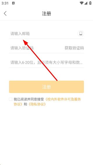 3、切換至郵箱注冊模式,輸入郵箱地址獲取驗證碼,按規則設置密碼,勾選協議后點擊注冊,可通過郵箱完成賬號的注冊操作。
