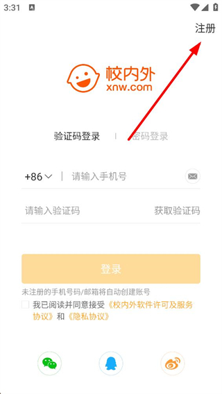 1、進入登錄界面可選擇驗證碼或密碼登錄,輸入手機號獲取驗證碼,勾選協議后登錄,未注冊號碼會自動創建賬號,也能通過第三方賬號快捷登錄。