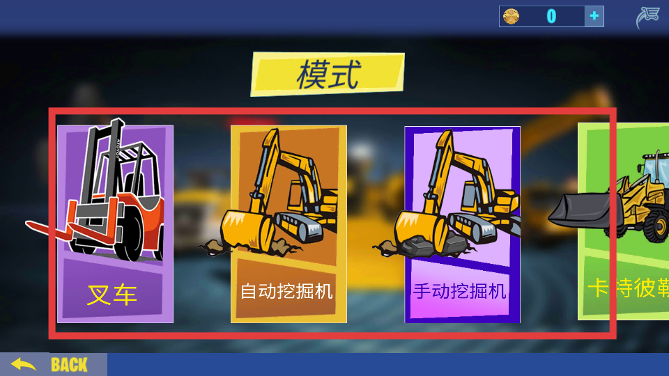2、來到模式選擇界面,有叉車、自動挖掘機、手動挖掘機等模式可選,玩家根據喜好挑選,開啟對應設備的操作體驗。