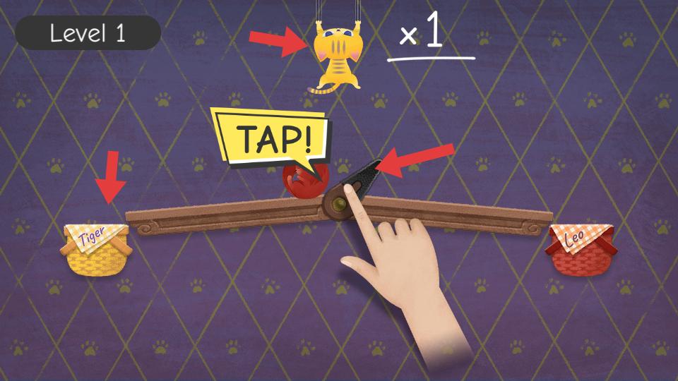 2、關卡中根據TAP提示,點擊相關位置,讓貓咪等元素移動,完成關卡要求的操作。