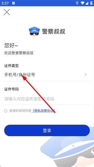2、進入登錄頁面,需選擇證件類型,輸入對應證件號碼,勾選相關協議后,點擊登錄按鈕完成登錄操作。