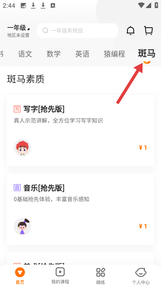 2、點斑馬素質界面涵蓋寫字、音樂等課程,以搶先版形式推出,強調真人示范或基礎體驗單科僅1元探索多元素質培養。