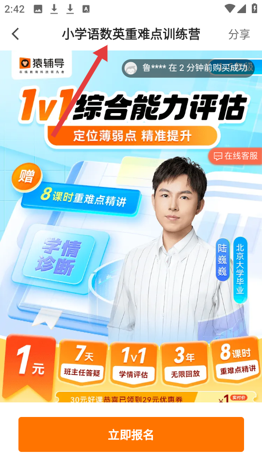 3、點語數英重難點訓練營1v1評估頁陸巍巍加持,1元享學情評估與8課時精講,定位薄弱點精準提升為學習提供專業診斷。