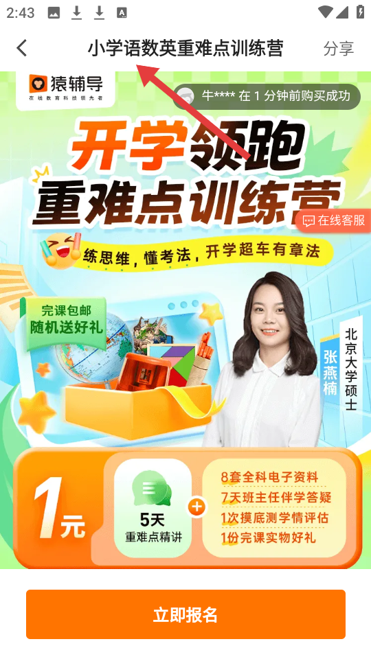 4、點重難點訓練營宣傳頁北大碩士張燕楠坐鎮,1元含5天精講、資料與實物禮,7天伴學答疑助力開學超車練思維懂考法。