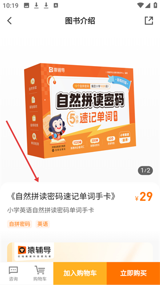 2、圖書介紹自然拼讀密碼速記單詞手卡,標注價格29元,屬于小學英語類,可咨詢、加入購物車或立即購買。