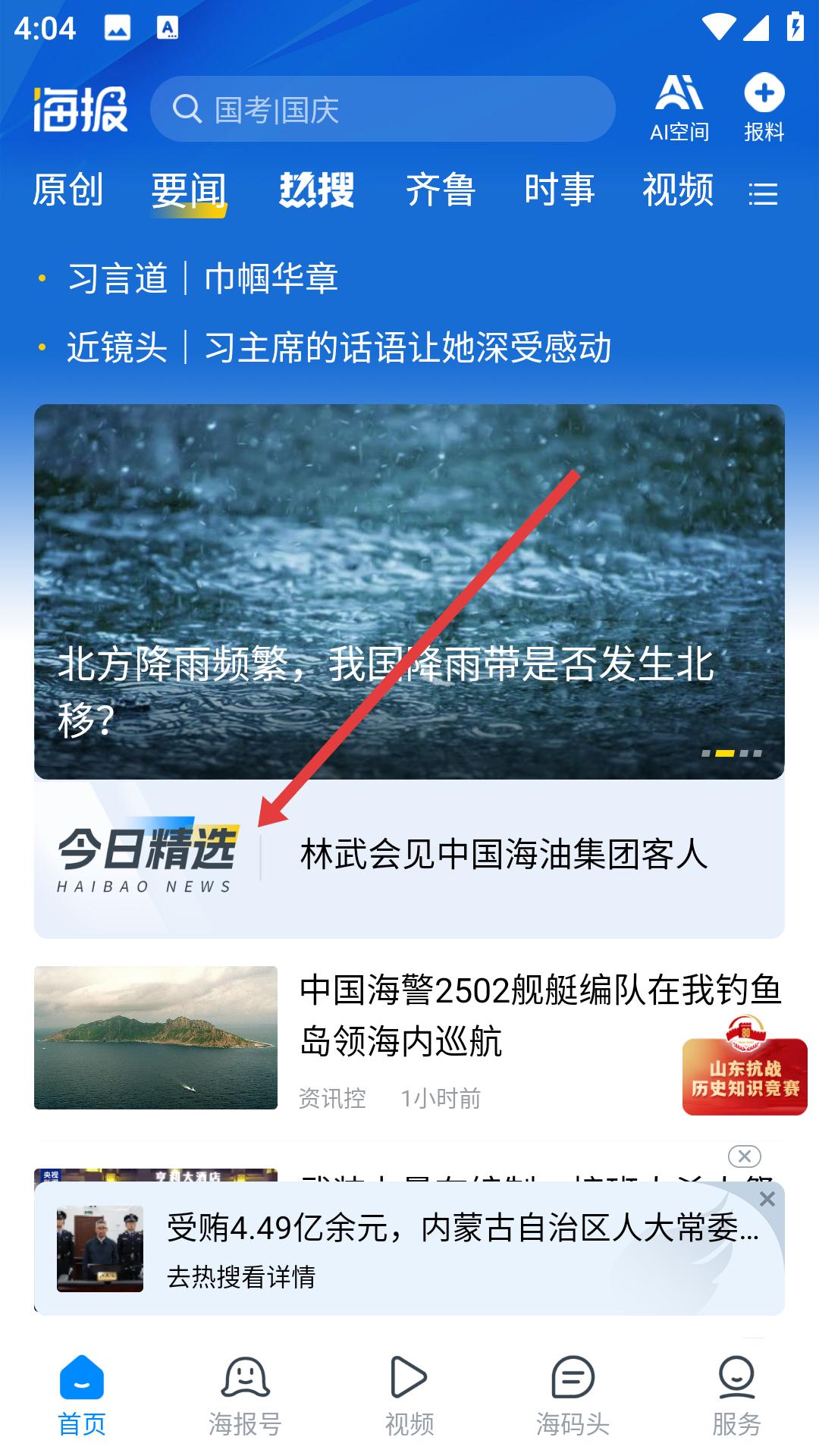 3、在首頁頁面,可查看新聞要聞,熱搜,時事等新聞內容,還有今日的精選新聞等等。