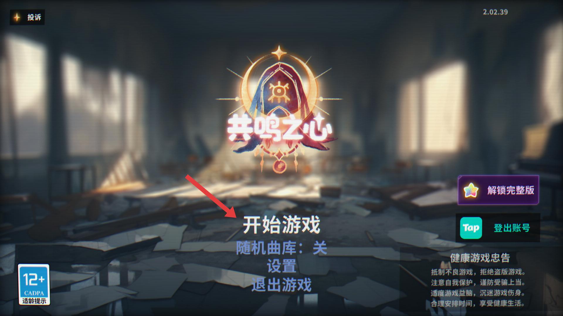 1、進入共鳴之心游戲界面,點擊開始游戲,即可開啟游戲,進入后續的場景與戰斗環節。
