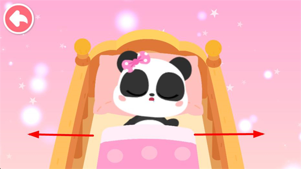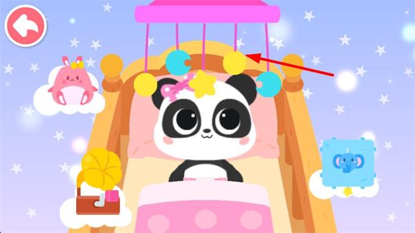 2、在休息場景里互動床上方的裝飾物品,觸發對應的趣味效果,營造舒適的休息氛圍,陪伴熊貓寶寶放松。