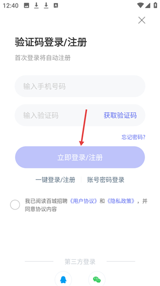 1、登錄板塊支持驗證碼、一鍵、賬號密碼及第三方QQ、微信登錄,首次登錄自動注冊,需同意用戶協議和隱私政策。