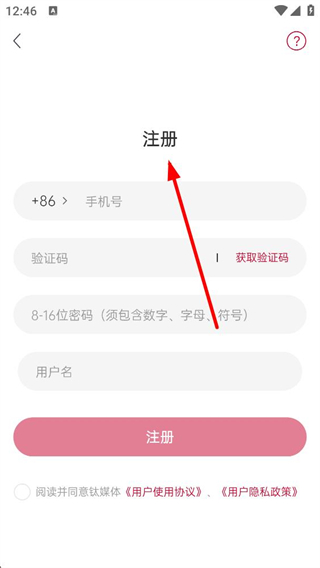 4、注冊頁面需填寫手機號獲取驗證碼,設置符合要求的密碼并填寫用戶名,勾選協議后點擊注冊,完成賬戶創建流程。