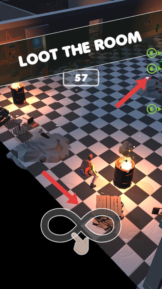 3、進入任務場景,看到LOOT THE ROOM提示,操控角色移動,收集場景中的物品,完成任務目標。