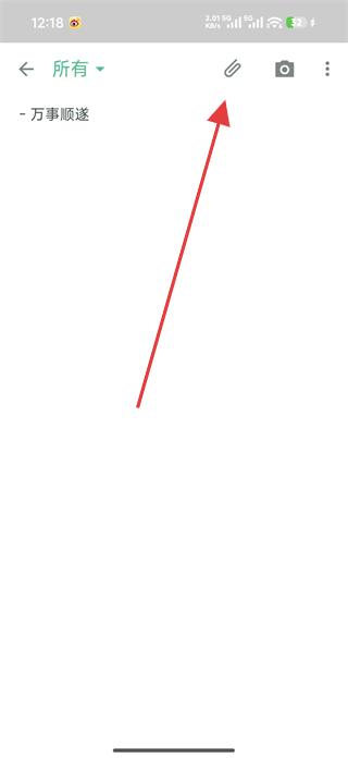 3、進入主界面后可看到已有筆記內容,點擊頁面上方的附件圖標,可添加相關附件內容,豐富筆記的信息,完善筆記內容。