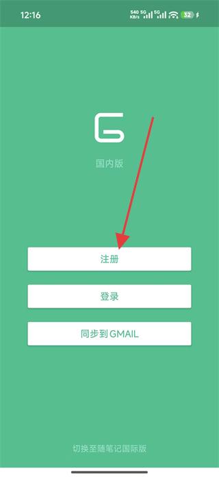 1、打開隨筆記軟件,進入初始頁面,可看到注冊登錄等選項,選擇注冊按鈕,進入注冊界面,準備填寫信息完成賬號注冊流程。