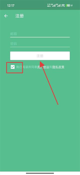 2、在注冊界面輸入郵箱和密碼,勾選已閱讀并同意相關協議和隱私政策,點擊注冊按鈕,可完成賬號注冊,進入軟件主界面。