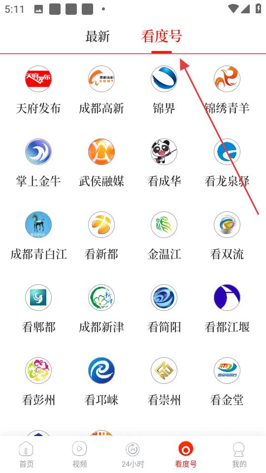 3、若關注特定區域或機構資訊,點擊底部看度號,切換至對應頁面,挑選感興趣賬號圖標點擊進入,瀏覽其發布的專屬內容,聚焦細分領域資訊。