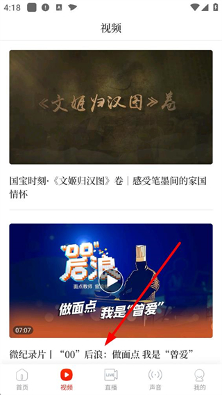 2、進入視頻頁面后,可看到不同主題的視頻內容,點擊目標微紀錄片對應的區域,就能進入該視頻的播放界面。