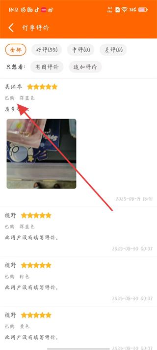 3、查看訂單評價頁面瀏覽其他用戶對文具的好評,如關于質量的評價,參考評價信息,判斷文具的品質,以便做出購買決策。