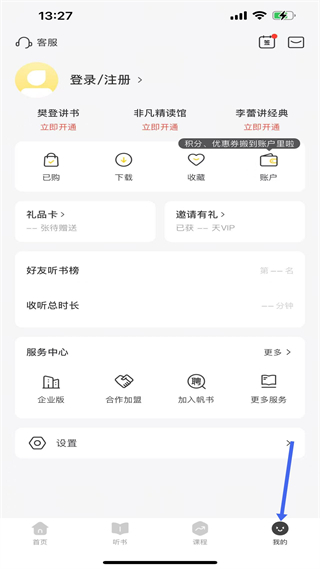 4、切換到我的界面,可進行登錄注冊操作,能使用已購下載等功能,還有服務中心板塊,可獲取企業版等相關服務。