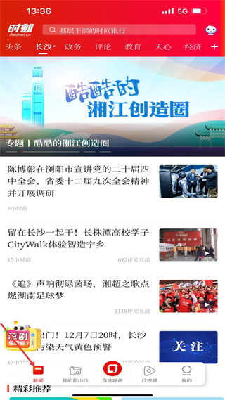 1、新聞客戶端長沙頻道首頁,提供本地新聞與專題資訊,設多個功能入口,是獲取湖南本地資訊的核心板塊。