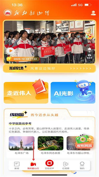 2、該板塊聚焦紅色研學,含走近偉人等功能與研學線路,助力了解韶山紅色資源,是紅色文化傳播的數字化載體。
