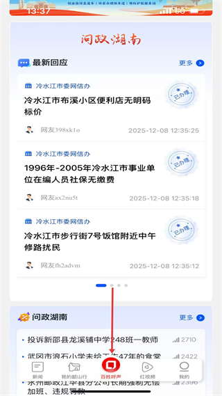 3、此板塊是政民互動平臺,展示問政湖南最新回應,可反饋訴求查進度,是本地便民服務與民意傳遞渠道。