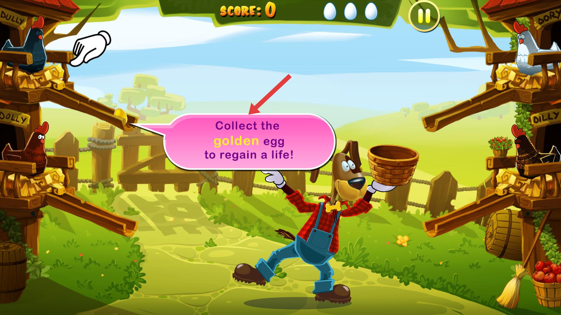 3、游戲中會出現金蛋,收集金蛋能恢復一次生命,在收集雞蛋時,留意金蛋,遇到就及時收集,保障游戲生命數,利于持續游戲。