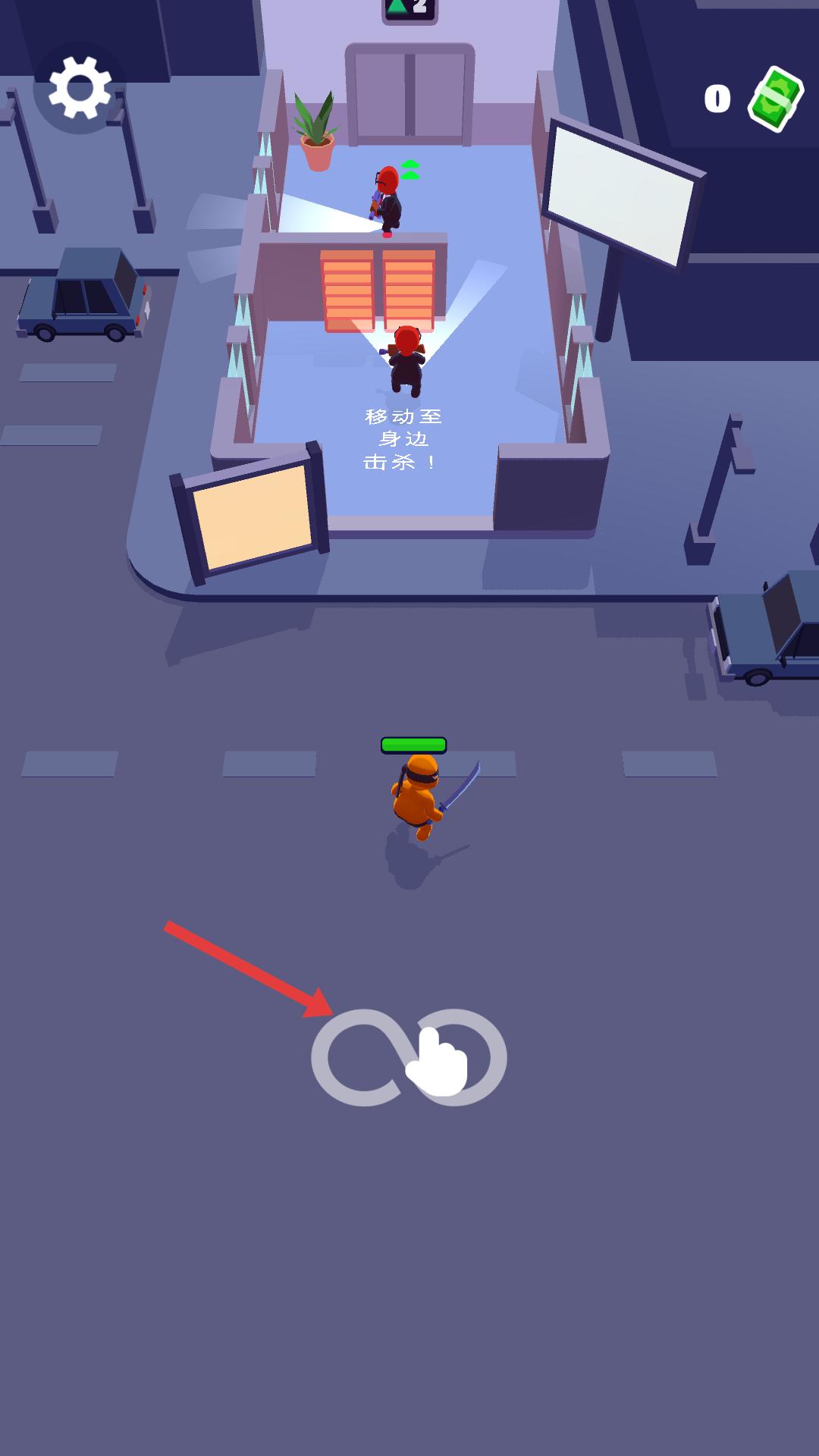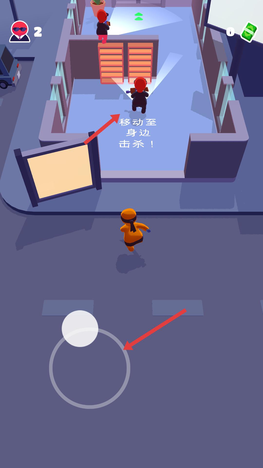 2、根據提示,操控角色朝著敵人方向移動,靠近敵人后,可進行擊殺操作,利用移動技巧,快速抵達敵人身邊,發起攻擊。