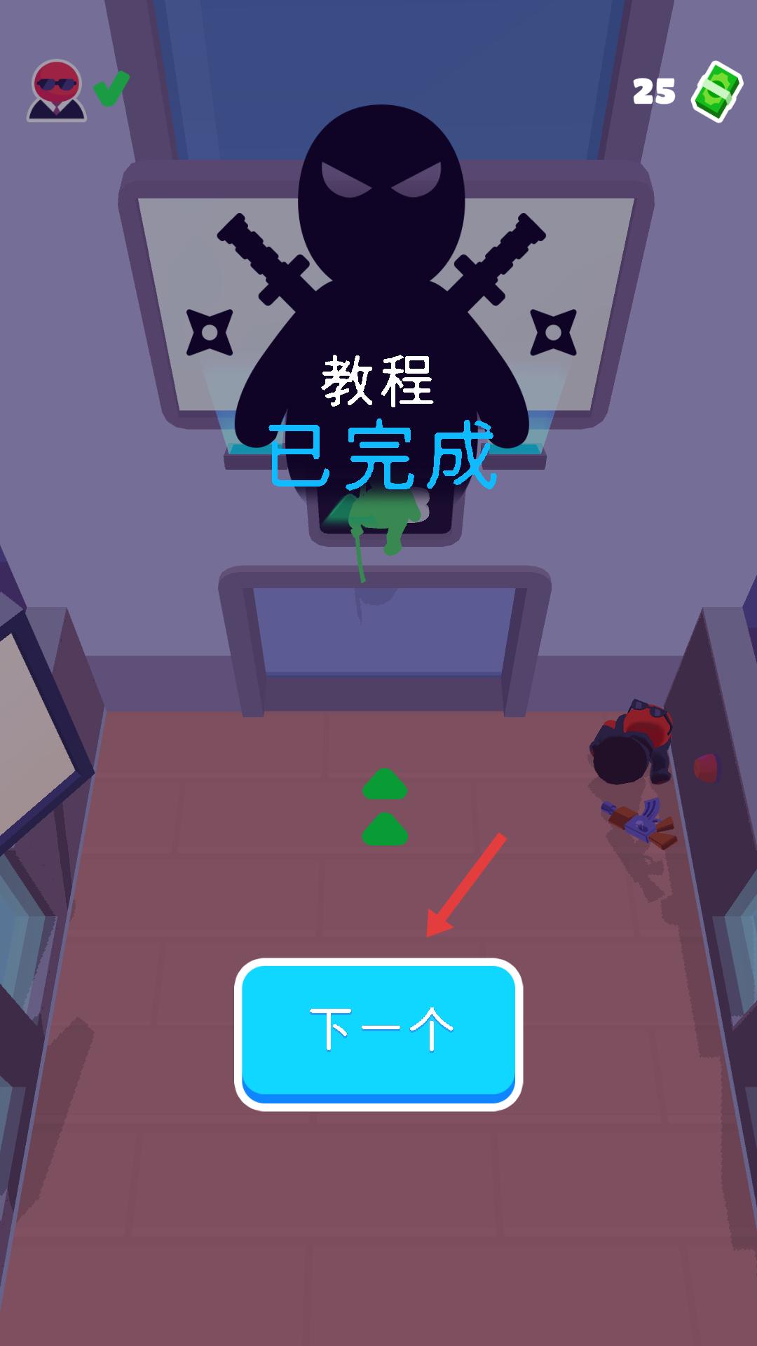 4、完成教程關卡后,界面會顯示教程已完成,此時點擊下一個按鈕,即可進入下一個關卡,繼續新的游戲挑戰。