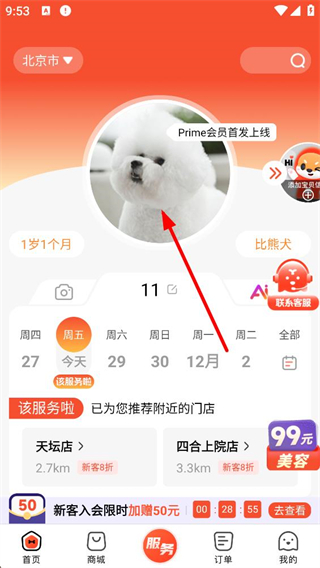1、服務頁面點擊添加寶貝信息,可進入寵物檔案創建流程,完成后能啟用寶貝關愛日歷等寵物關懷功能。