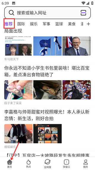 2、首頁推薦資訊區,涵蓋多分類內容,可瀏覽熱點新聞、生活趣聞,助力快速獲取多元信息。