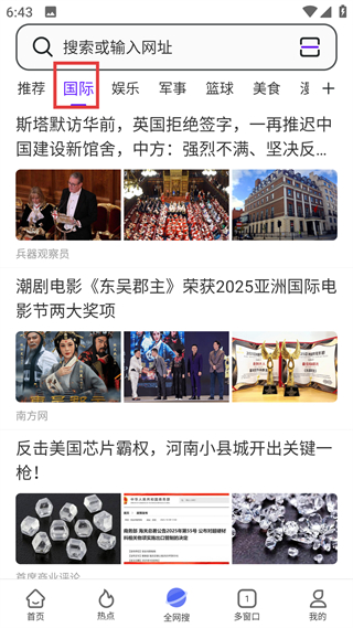 3、國際分類資訊區,聚焦國際政治文化內容,可查看外交動態、影視獎項等資訊,拓展國際視野。