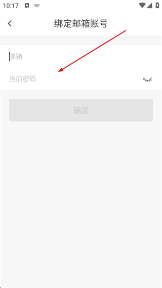 4、在綁定郵箱賬號頁面輸入郵箱地址和當前密碼,點擊確定按鈕,完成郵箱賬號綁定操作。