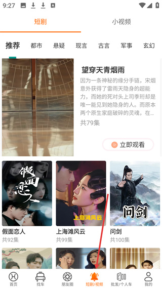 3、短劇視頻頁面有短劇、小視頻分類,短劇含都市、懸疑等類型,推薦望穿天青煙雨、假面戀人等多部短劇可立即觀看。