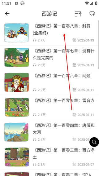 3、在章節列表頁面選擇第一百零八章封賞的章節,點擊進入該章節的詳細學習頁面。