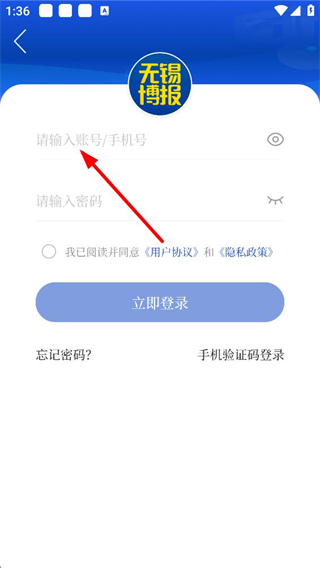 4、也可選擇賬號密碼登錄方式,輸入手機號和密碼,勾選同意協議后點擊立即登錄,忘記密碼可點擊忘記密碼進行重置。