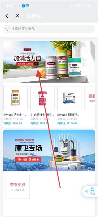 3、切換商品板塊,查看Swisse保健品摩飛電器等商品,點擊查看更多瀏覽更多商品,了解不同品類的優惠及價格信息。